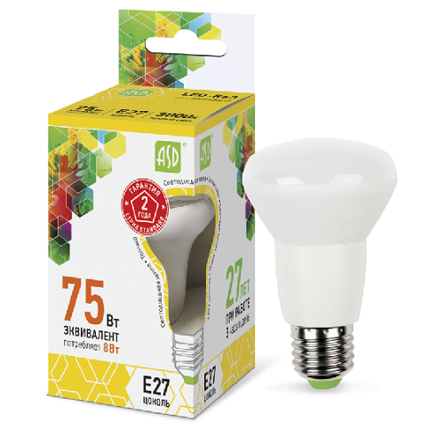 Лампа светодиодная ASD Standart R63 Спот E27 220В 8Вт 720Лм 3000К 63х102мм
