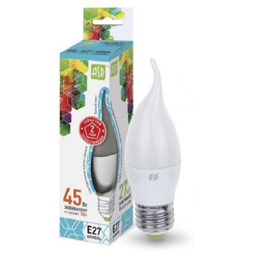 Серия ламп Standart от ASD это прекрасное решение для освещения жилых и обеденых зон. Форма колбы "Свеча" (С37) подходит для светильников и люстр с небольшими и узкими плафонами.