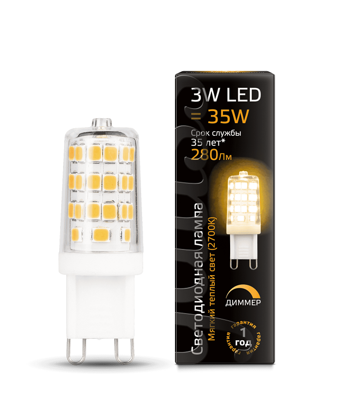 Лампа светодиодная диммируемая Gauss G9 3Вт 220В 280Лм 3000К капсульная картинка