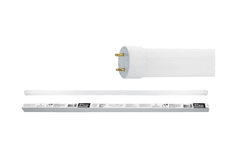 Лампа светодиодная FERON LB-216, Т8 (линейная двухцокольная), 48W 230V G13 6400К (дневной), рассеиватель матовый белый, угол рассеивания 270°, корпус стекло, 1500*26мм