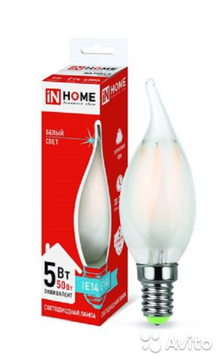Лампа светодиодная филамент матовая InHome СА37 Свеча на ветру E14 220В 5Вт 450Лм 4000К картинка