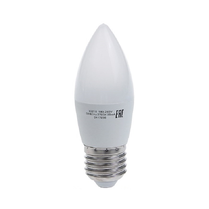 Лампа светодиодная Gauss Elementary С37 Свеча E27 220В 6Вт 450Лм 2700К 37х98мм