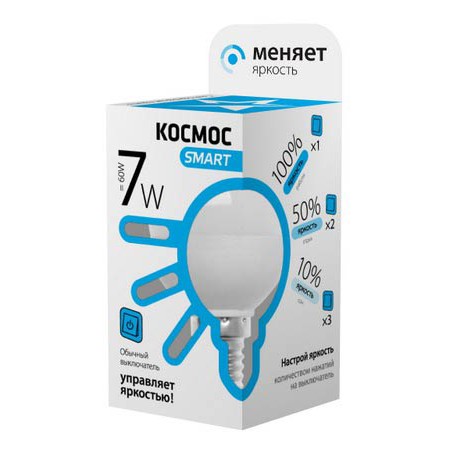 Лампа светодиодная Космос Smart G45 Шар Е14 220В 7Вт 4500К 3 режима 45х79мм картинка