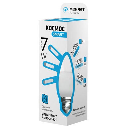 Лампа светодиодная Космос Smart С37 Свеча Е27 220В 7Вт 4500К 3 режима 37х99мм картинка