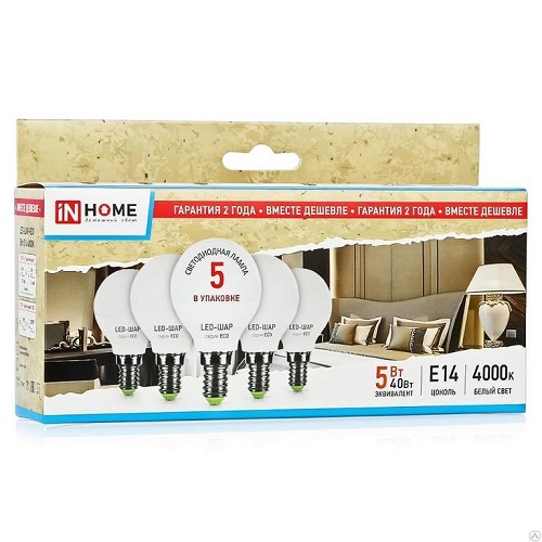 Набор лампа светодиодная InHome Eco G45 Шар FR Е14 220В 5Вт 375Лм 4000К 45х76мм картинка