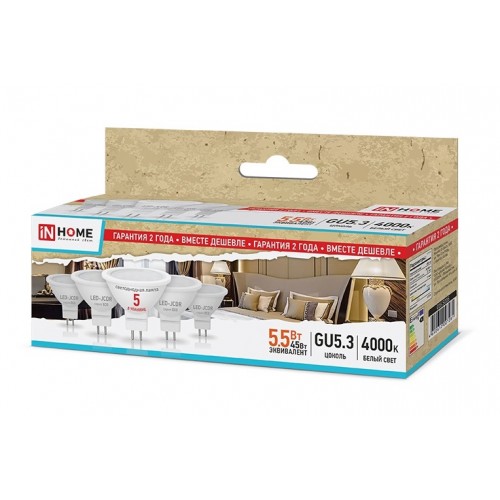Набор лампа светодиодная InHome Eco GU5.3 220В 5,5Вт 630Лм 4000К 51х50мм