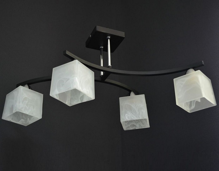 Люстра потолочная четырехрожковая Мелодия Света Стаканчики Е27 Черный/хром P9483/4
