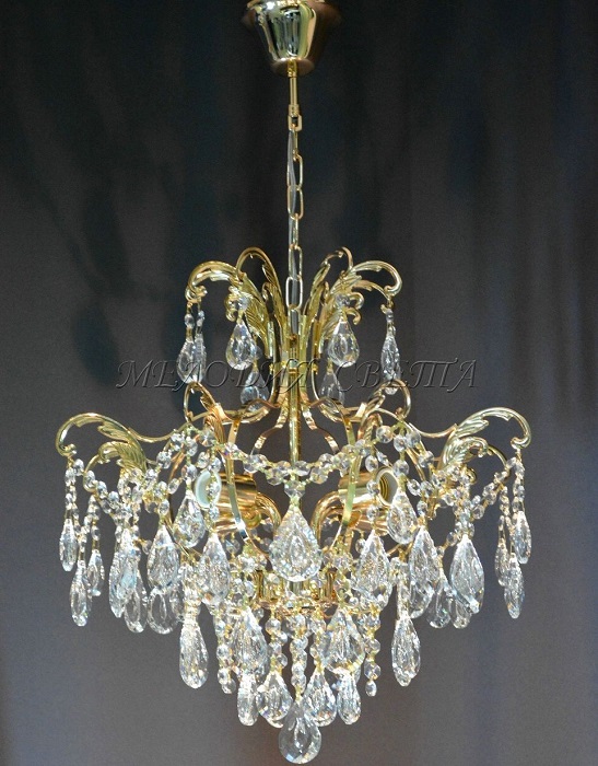 Люстра потолочная четырехрожковая на цепочке Хрусталь Мелодия Света Капли Е27 Золото картинка