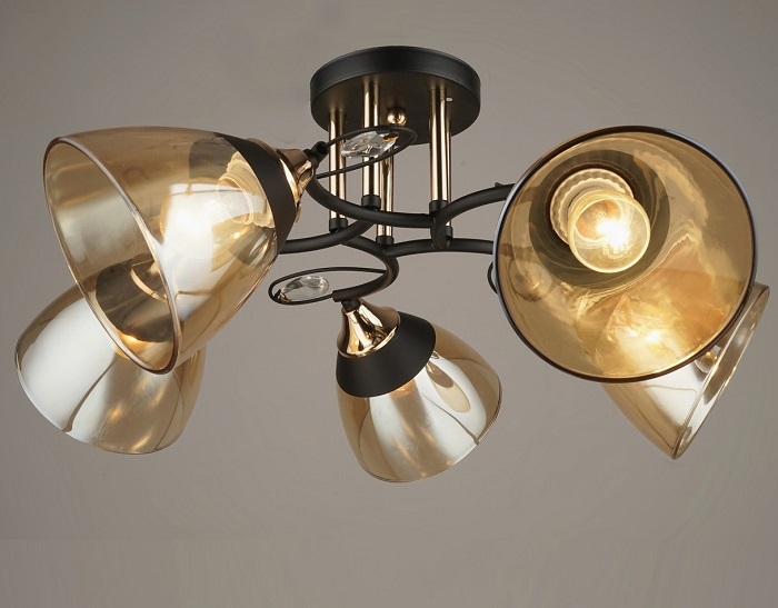 Люстра потолочная пятирожковая Мелодия Света Е27 220В 60Вт Черный/золото