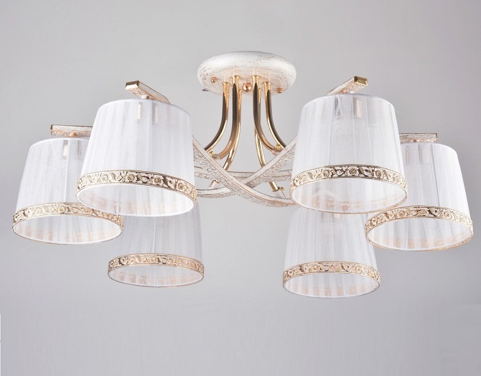 Люстра потолочная шестирожковая Мелодия Света Греция Е27 Белое золото