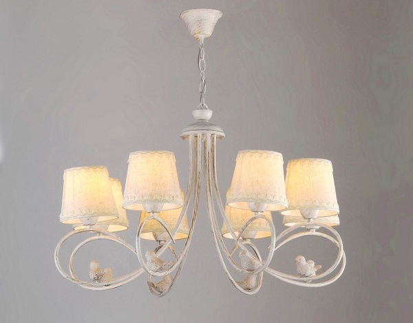Люстра выполнена в классическом стиле в светло-бежевых тонах, на изогнутых линиях креплений плафонов расположены керамические фигурки птиц, люстра гармонично подойдет в любое помещение: гостиную, спальню, детскую, кухню или столовую. В плафоны подходят светодиодные лампы, лампы накаливания и энергосберегающие лампы с цоколем Е27. Люстра крепится при помощи монтажной планки, что обеспечивает плотное прилегание светильника к потолку или же навешивается на установленный в потолке крюк. В сочетании с бра и торшером создадут уют и комфорт в помещении.