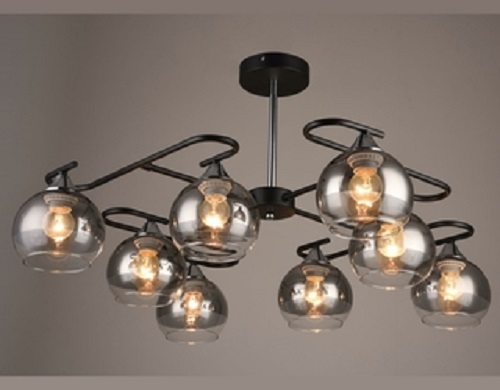 Лаконичный дизайн люстры из восьми рожков с плафонами в форме шара, выполненными из стекла темного цвета, гармонично подойдут в любое помещение: гостиную, спальню, детскую, кухню или столовую. Основание люстры сделано из металла черного цвета в виде плавных изогнутых линий. В плафоны подходят светодиодные лампы, лампы накаливания и энергосберегающие лампы с цоколем Е27. Люстра крепится при помощи монтажной планки, что обеспечивает плотное прилегание светильника к потолку или же навешивается на установленный в потолке крюк. В сочетании с бра и торшером создадут уют и комфорт в помещении.