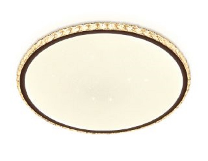 Потолочный светодиодный светильник серии ORBITAL, коллекции Crystal. Модель FF71 выполнена в современном стиле Постмодернизм. Светильник круглой формы, белого цвета, изготовлен из пластика и металлического корпуса, с граненой декоративной рамкой кофейного цвета. Благодаря встроенным в конструкцию светодиодам, вы можете с уверенностью забыть о поиске или замене дополнительных ламп. С помощью инфракрасного пульта вы сможете регулировать цветовую температуру, яркость освещения и ночной режим. Эти светильники подходят для натяжных потолков и будут прекрасным дополнением в гостиной, спальне или детской комнате.