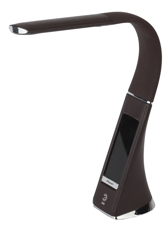 Светильник со светодиодами (LED) в качестве источников света. Цветовая температура 4000К. Сенсорное переключение, 3 уровня яркости. Многофункциональный дисплей: часы, будильник, дата, день недели, термометр.