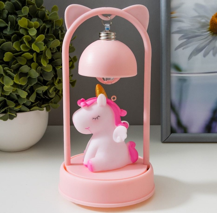 Настольный светильник "Единорожек" 1Вт 3хLR41 Розовый
