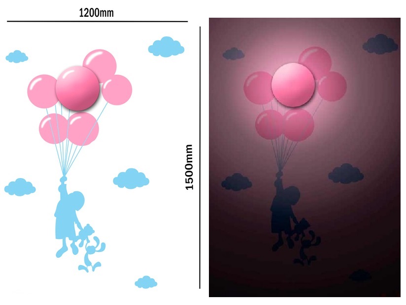 Светильник ночник "Девочка и шарики" Feron NL53 LED 1Вт 3xAA Розовый/синий
