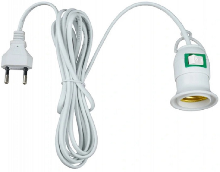 Патрон подвесной с выключателем и штепсельной вилкой 2м. Цоколь Е27.
