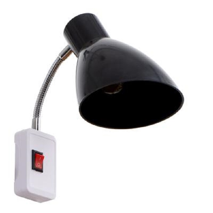 Переходник гибкий вилка-патрон E27 300мм с выключателем Черный