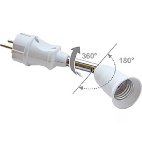 Переходник вилка-патрон Ecola E27 на шарнире 360°/180° 45мм белый
