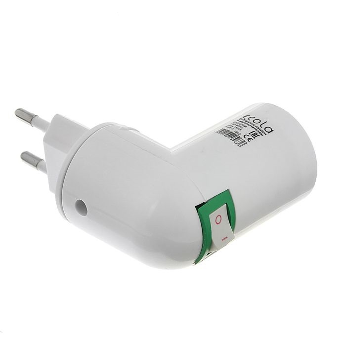 Переходник вилка-патрон Ecola E27 с выключателем Белый / Черный