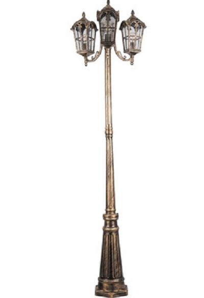 Светильник садово-парковый, серии «Кастелло» PL110 3*60W, E27, 230V, IP44, цвет черное золото, 4-х гранник, столб большой