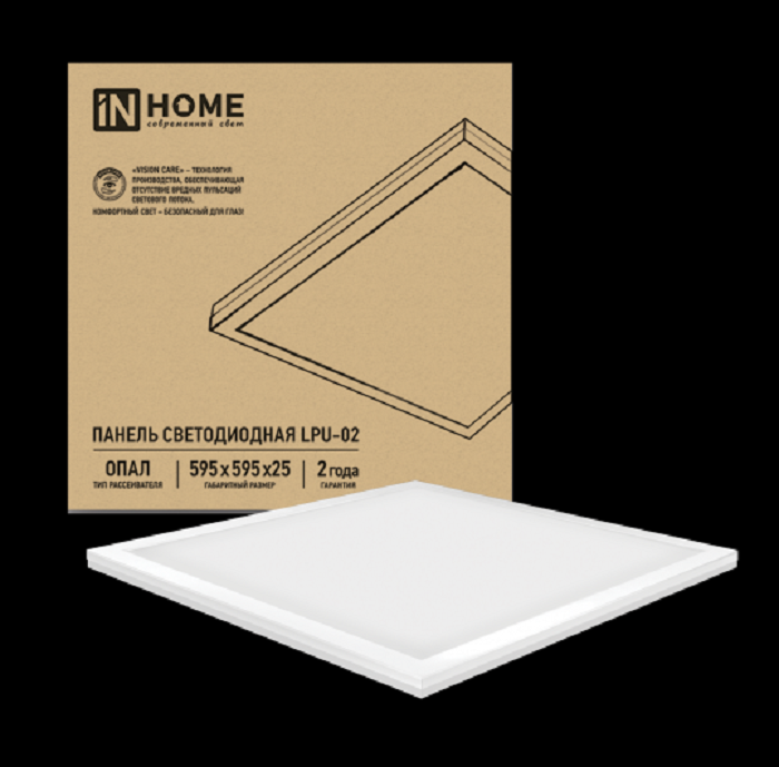 Панель светодиодная универсальная ОПАЛ сочетает в себе экономичность панелей ПРИЗМА и равномерное распределение светового потока характерное для линейки InHome. Светильник встраивается в стандартную ячейку подвесного потолка типа «Армстронг», либо монтируется на ровную поверхность. Корпус выполненный из листового металла и окрашенный белой порошковой краской, не подвержен коррозии и тепловой деформации, обеспечивает достаточный теплоотвод и долговечность системы. Встроенный в корпус драйвер обеспечивает равномерное свечение без вредных для глаза мерцаний светового потока. Матовый рассеиватель «ОПАЛ» идеально распределяет световой поток, сглаживая яркость свечения, такой эффект достигается за счёт использования индивидуальных рассеивающих линз на светодиодах. Благодаря мягкому равномерному свечению и отсутствию пульсаций светового потока, панель может быть использована даже в детских школьных и дошкольных учреждениях. Типовой размер 595х595мм позволяет эффективно экономить потолочное пространство при встраиваемом способе и быть максимально незаметным, аккуратным - при накладном способе монтажа. ЭПРА (драйвер) в комплекте (встроен в корпус панели). Гарантия на изделия составляет 1 год с момента покупки. Преимущества: высокая экономичность, встроенная защита от скачков напряжения, универсальный монтаж, встроенный в корпус драйвер не мешающий распределению светового потока, равномерное свечение за счет индивидуальных рассеивающих линз на светодиодах, отсутствие пульсации и мерцания, соответствие регламенту ТС ЕАС.