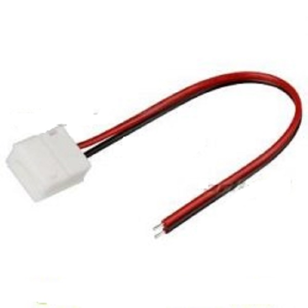 Коннектор для светодиодной ленты 5050 8 мм с проводом и разъемом на одной стороне предназначен для быстрого подключения монохромной светодиодной ленты шириной 10 мм к блоку питания или диммеру без использования пайки.