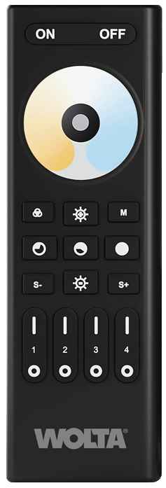 Пульт управления SMART торговой марки WOLTAE предназначен для дистанционного управления светодиодными лентами МОНО, ССГ, RGB, RGBW, RGBW+MlX (в зависимости от модели пульта) с напряжением 12-24В поддерживающими диммирование ШИМ (PWM). Управление осуществляется при помощи пятиканального контроллера SMART WOLTA@ модель: WLC-C/05-15A. Основное назначение пульта SMART WOLTA — включение и выключение светодиодных лент, регулировка яркости, насыщенности цвета, изменение цветовой температуры.