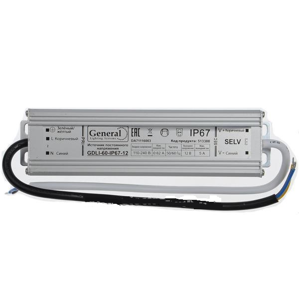 Блок питания для светодиодной ленты General 12В 60Вт IP67 GDLI-60-IP67-12