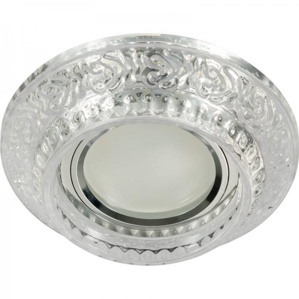 Декоративный встраиваемый светильник ТМ "Fametto" DLS-L105 GU5.3 CHROME/CLEAR обладает цоколем GU5.3, дополнительной светодиодной подсветкой 3вт и допускает применение светодиодных или галогенных ламп.