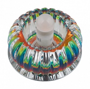 Входная частота, Гц - 50; Входное напряжение, В - 230; Диаметр выреза для монтажа, мм - 55; Диапазон рабочих температур, °С - -20 до +45; Класс защиты, IP - 20; Максимальная мощность, Вт - 40; Материал корпуса - стекло; Патрон - G9; Применяемая лампа - светодиод/ галоген; Размер видимой части светильника, мм - 80х37; Размеры, мм - 80х55; Способ установки - Встраиваемый; Цвет базы - хром; Цвет корпуса - радужный; Цоколь - G9