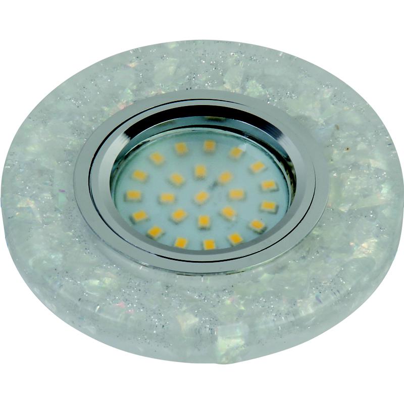 Входная частота, Гц - 50; Входное напряжение, В - 12/220; Диаметр выреза для монтажа, мм - 65; Диапазон рабочих температур, °С - +5 до +40; Класс защиты, IP - 20; Максимальная мощность, Вт - 35; Материал корпуса - стекло; Мощность дополнительной светодиодной подсветки, Вт - 3; Патрон - GU5.3; Применяемая лампа - светодиод/ галоген; Рабочее напряжение дополнительной светодиодной подсветки, В - 220; Рабочее напряжение, В - 12/220; Размер видимой части светильника, мм - 95х10; Размеры, мм - 95*20; Свет - Белый; Способ установки - Встраиваемый; Цвет базы - хром; Цвет корпуса - перламутр; Цветовая температура, К - 4000; Цоколь - GU5.3
