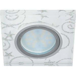 Входная частота, Гц - 50; Входное напряжение, В - 12/220; Диаметр выреза для монтажа, мм - 65; Диапазон рабочих температур, °С - +5 до +40; Класс защиты, IP - 20; Максимальная мощность, Вт - 35; Материал корпуса - стекло; Мощность дополнительной светодиодной подсветки, Вт - 3; Патрон - GU5.3; Применяемая лампа - светодиод/ галоген; Рабочее напряжение дополнительной светодиодной подсветки, В - 150-265; Рабочее напряжение, В - 12/220; Размер видимой части светильника, мм - 90х90х10; Размеры, мм - 90х90х20; Свет - Белый; Способ установки - Встраиваемый; Цвет базы - хром; Цвет корпуса - белый, серебро; Цветовая температура, К - 4000; Цоколь - GU5.3