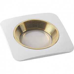 Данный декоративный встраиваемый светильник обладает цоколем GU5.3 допускает применение светодиодных или галогенных ламп. Входная частота, Гц - 50; Входное напряжение, В - 12/220; Диаметр выреза для монтажа, мм - 65; Диапазон рабочих температур, °С - +5 до +40; Класс защиты, IP - 20; Максимальная мощность, Вт - 50; Материал корпуса - алюминий; Патрон - GU5.3; Применяемая лампа - светодиод/ галоген; Размер видимой части светильника, мм - 87х87х5; Размеры, мм - 87х87х33; Способ установки - Встраиваемый; Цвет корпуса - белый и золото; Цоколь - GU5.3