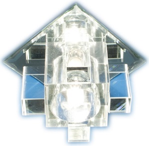Основание круглое, из металла, цвета "металлик". Диаметр 85 мм, диаметр монтажного отверстия 60 мм. Плафон стеклянный, сложной геометрической формы, декорирован под хрустальный.