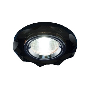 Корпус круглой формы, из толстого стекла, серого цвета, ограненный, с зеркальным дном. Применяется для декоративного освещения потолков из гипсокартона или сайдинг-панелей