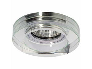 Корпус круглой формы, из толстого стекла, прозрачный, простой и неограненный, с зеркальным дном. Применяется для декоративного освещения потолков из гипсокартона или сайдинг-панелей.
