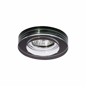 Корпус круглой формы, из толстого стекла, серого цвета, простой и неограненный, с зеркальным дном. Применяется для декоративного освещения потолков из гипсокартона или сайдинг-панелей.