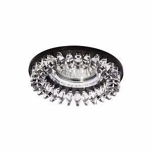 Корпус круглый, диаметром 95 мм, днище из толстого стекла черного цвета, декорирован ограненным стеклом, имитирующим хрустальное украшение. Монтажное отверстие диаметром 65 мм.