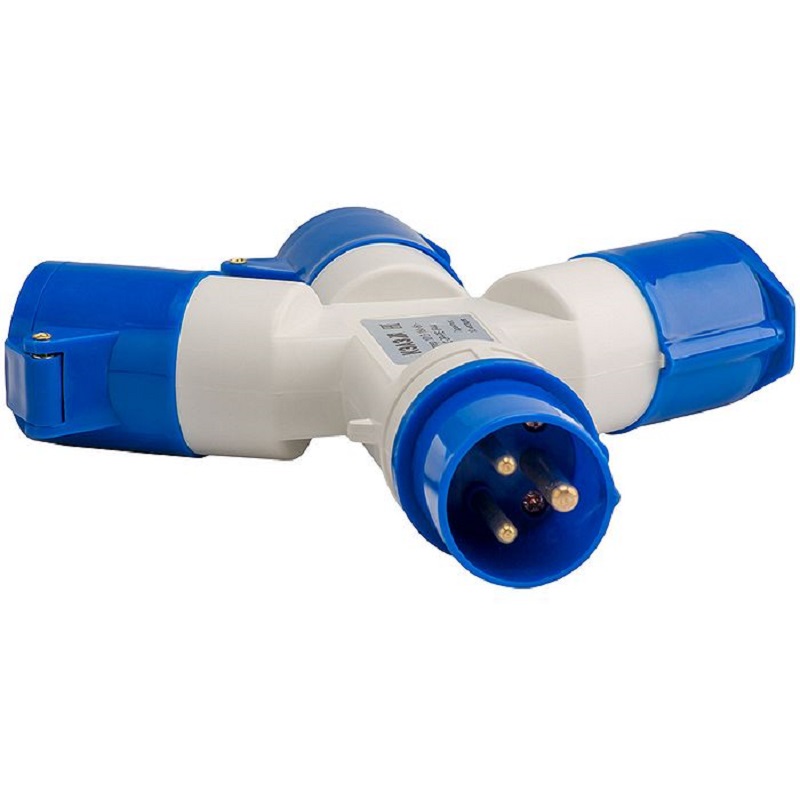 Разветвитель кабельный трехлучевой Кэаз 16А 2P+PE 230В IP44 синий