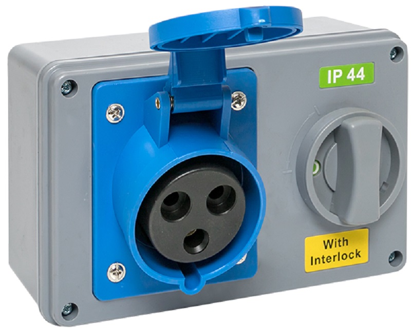 Розетка кабельная с блокировкой и выключателем EKF PROxima 1423 32А 2Р+PЕ 230В IР44 синий