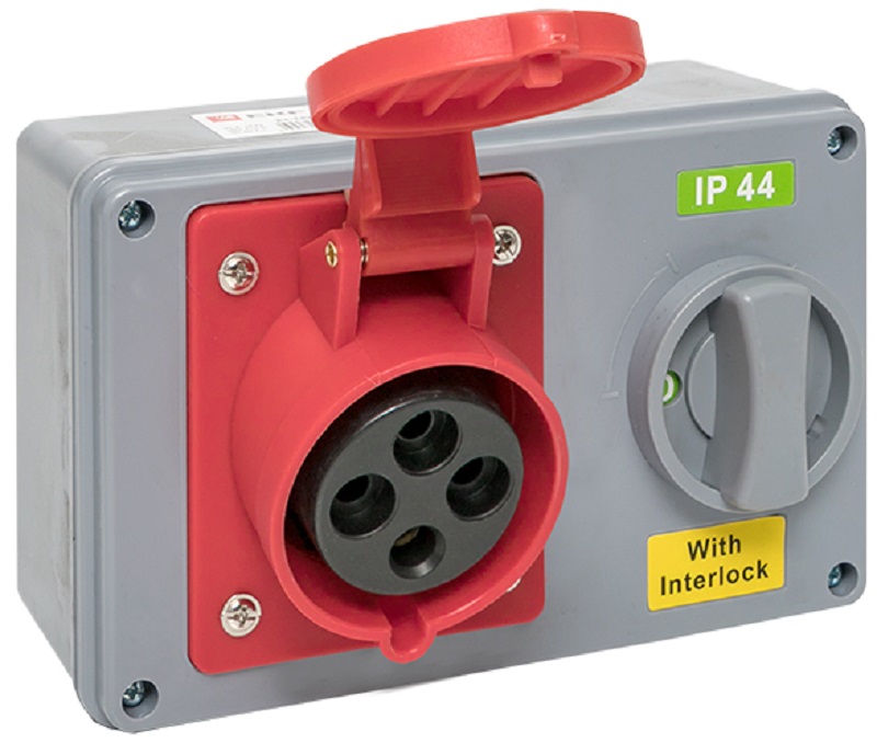 Розетка кабельная с блокировкой и выключателем EKF PROxima 1424 32А 3Р+PЕ 400В IР44 красный