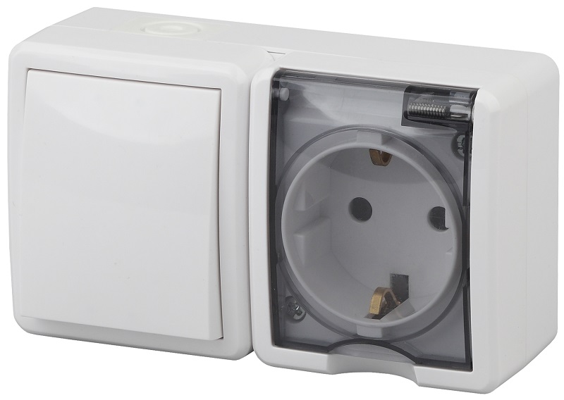 Блок накладной Эра Эксперт розетка 1-м.+выключатель 1-кл. IP54 белый картинка