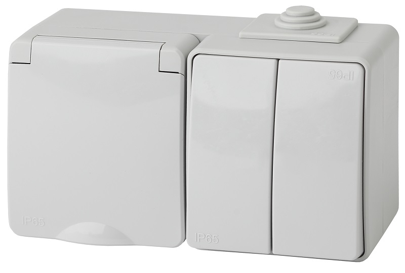Блок накладной Эра Эксперт розетка 1-м.+выключатель 2-кл. IP65 серый