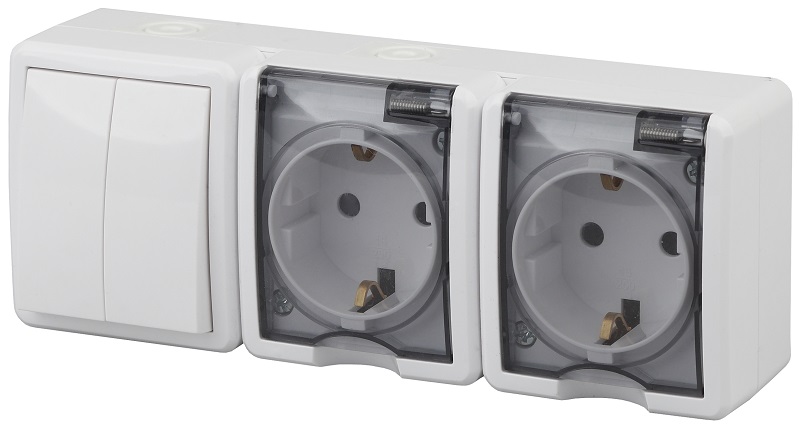 Блок накладной Эра Эксперт розетка 2-м.+выключатель 2-кл. IP54 белый картинка
