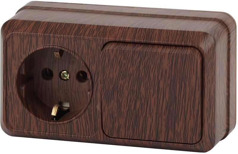 Блок накладной Intro Quadro розетка 1-м.+выключатель 1-кл. венге