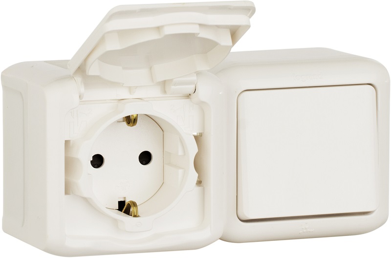Блок накладной Legrand Quteo розетка 1-м.+выключатель 1-кл. IP44 белый