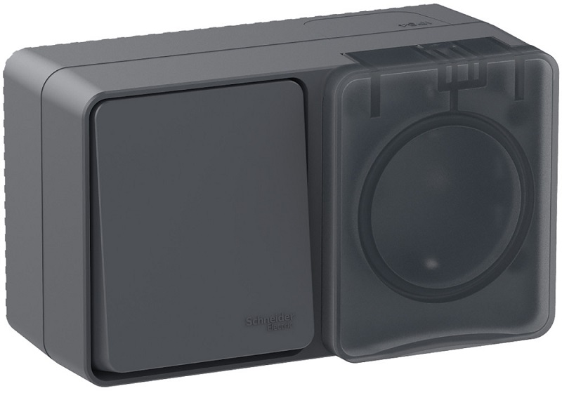 Блок накладной Systeme Electric AtlasDesign Profi54 розетка 1-м.+выключатель 1-кл. IP54 антрацит