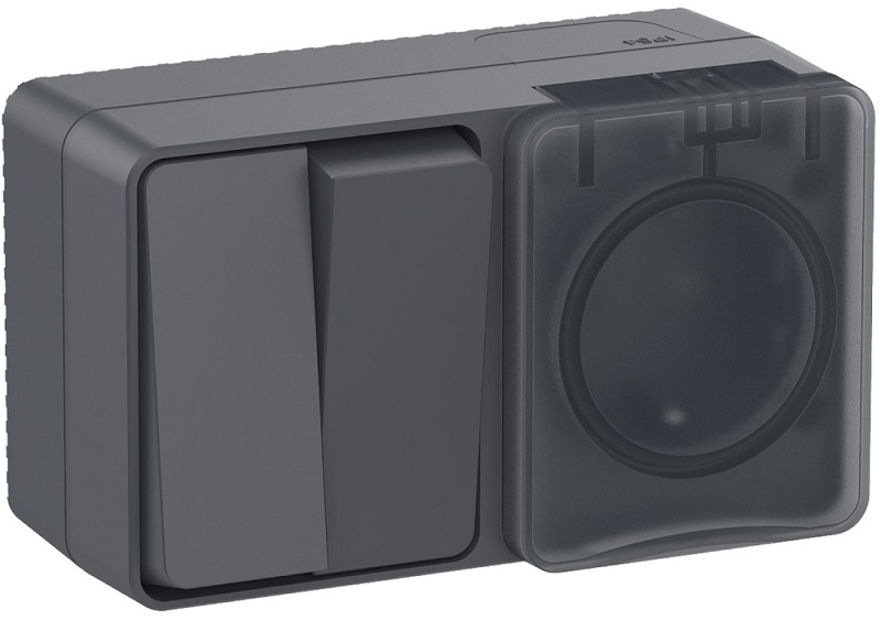 Блок накладной Systeme Electric AtlasDesign Profi54 розетка 1-м.+выключатель 2-кл. IP54 антрацит