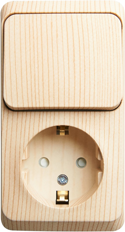 Блок накладной Systeme Electric Этюд Дача розетка 1-м.+выключатель 1-кл. сосна картинка